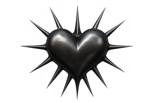 Black leather dog collar with metal spikes, featuring heavy metal and punk fashion accessory style on transparent background