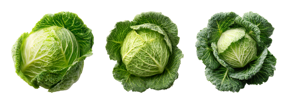 Fresh green cabbage collection isolated PNG set with isolated on transparent background