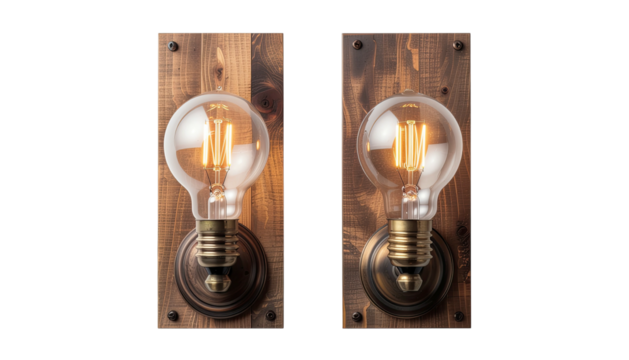 Illuminating Contrast: A pair of vintage light bulbs stand side by side, one radiating a warm, inviting glow, the other clear and dormant, illuminating the duality of illumination.