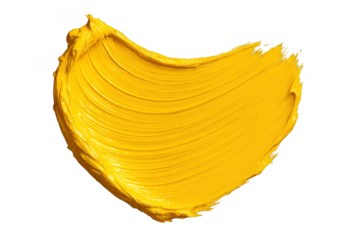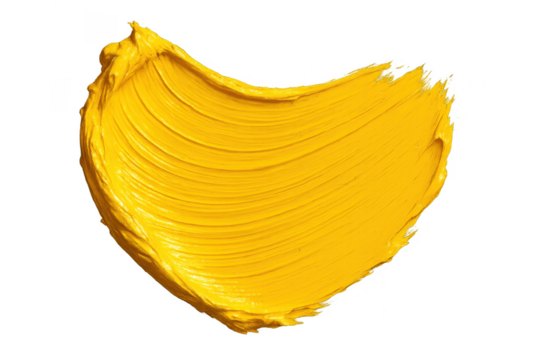 Textured yellow paint stroke isolated on a transparent background, vibrant art