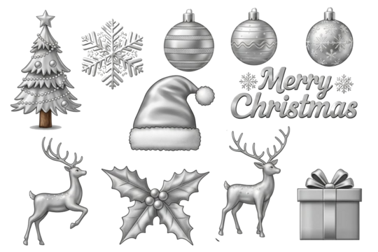 "Realistic Christmas ornaments vector set — glossy baubles, golden stars, snowflakes, candy cane, shiny highlights, editable layered SVG, transparent background"