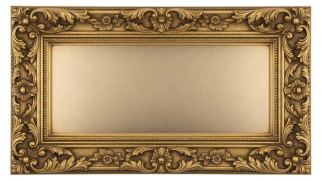 Ornate golden picture frame PNG isolated on transparent background, vintage style decorative element for graphic design and photo editing