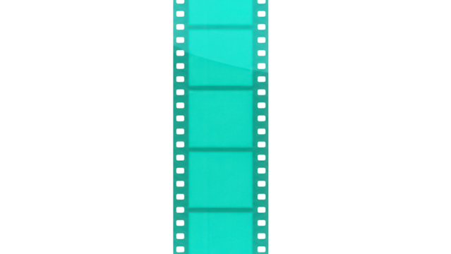 Turquoise film strip PNG isolated on transparent background, retro movie reel graphic for video editing and design projects