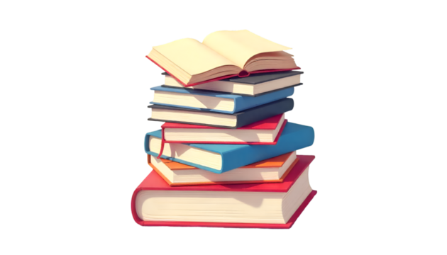 Boy with Magnifying Glass Examines Stack of Colorful Books