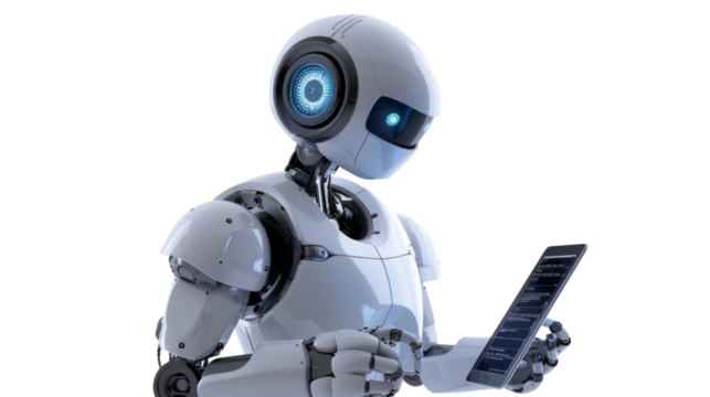 Friendly robot showcasing artificial intelligence technology in a modern setting for education and innovation