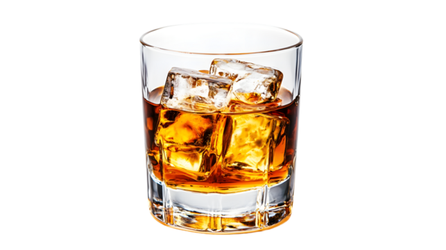 Premium Glass of Scotch Whiskey with Ice on White Background