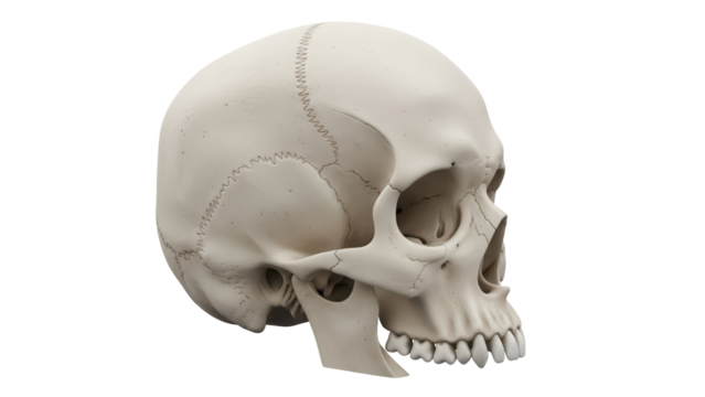 Human skeleton anatomy isolated PNG, front view of rib cage, bones and skull on transparent background, medical diagram for educational use