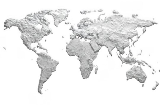 White World map isolated on transparent background, png file, no background png file