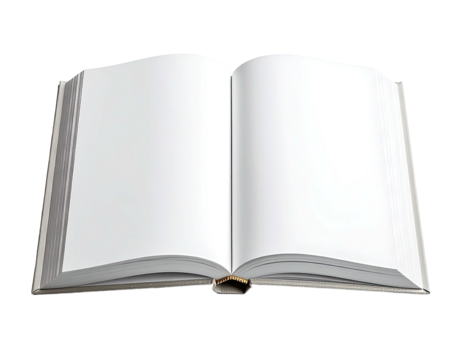 Open Blank White Book with Clean Pages on Transparent Background For Mockup and Display Purpose, PNG