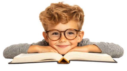 Young boy with glasses engrossed in reading, finding adventure and knowledge in a book. the importance of education learning