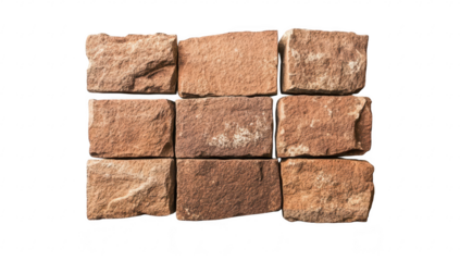 A carefully arranged set of rustic. reddish-brown stones on a clean white background. their natural texture and color. ideal for backgrounds or construction themes