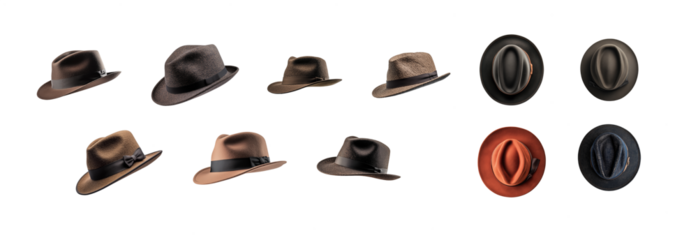 Classic Fedora Hat Mega Collection. Transparent background PNG.