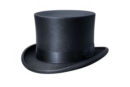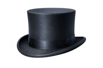 Black top hat representing elegance, formal events, vintage style, luxury, and the golden age of gentleman fashion