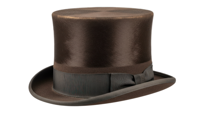 Elegant Brown Top Hat with Grosgrain Ribbon Isolated on Transparent Background