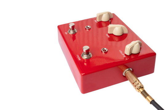 Red distortion guitar pedal isolated
