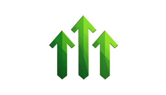 Three green arrows, pointing upwards, with subtle shadows, isolated on a black background
