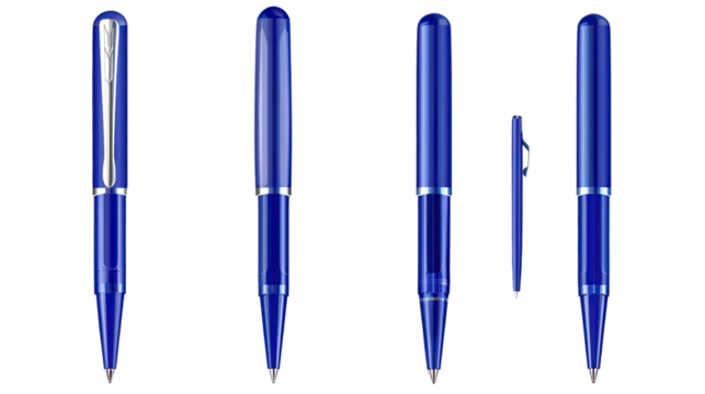 Precision in Blue: Close-up of multiple elegant blue pens, showcasing their sleek design and detailed craftsmanship.