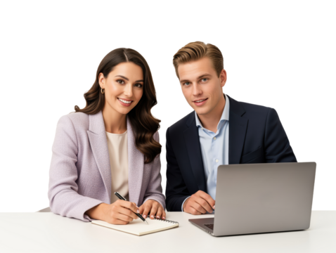 Smiling young employee taking notes with transparent background