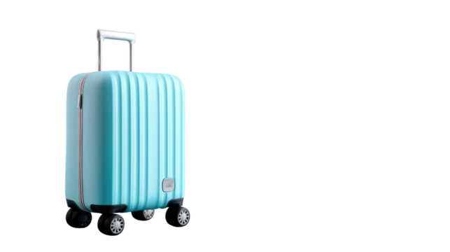 Rolling Suitcase: A modern, stylish turquoise suitcase with a retractable handle and smooth-rolling wheels sits, suggesting travel, journey, and vacation adventures.