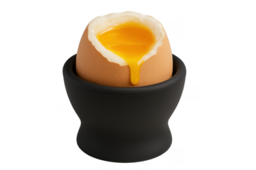 Soft boiled egg in egg cup with spoon isolated PNG, breakfast food on transparent background for healthy eating and recipe design