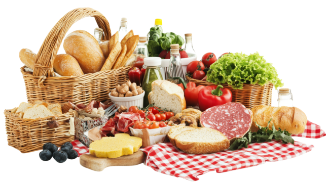 Abundant harvest basket, fresh organic garden produce and eggs overflowing with wholesome country charm