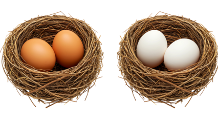 Three varieties of eggs showcasing different sizes and hues, perfect for culinary, farm, or nutritional themes.