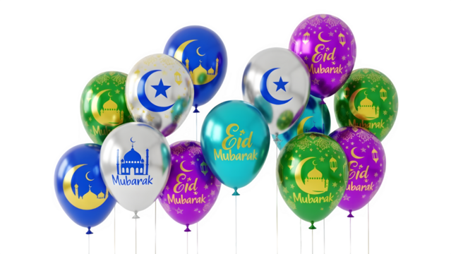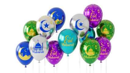 Vibrant balloons isolated on transparent background for ramadan or eid celebration