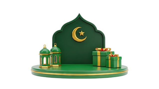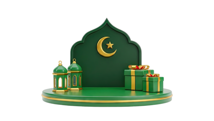 Ramadan Drum and Gifts with Green Lanterns and Stars