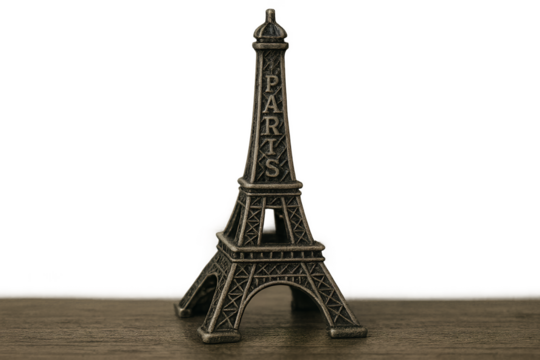 Elegant eiffel tower souvenir isolated on transparent background, a symbol of paris, france, and romantic travel, perfect for showcasing french culture