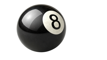 Black Billiard Ball with Number Eight in Sharp Detail on Transparent Background PNG