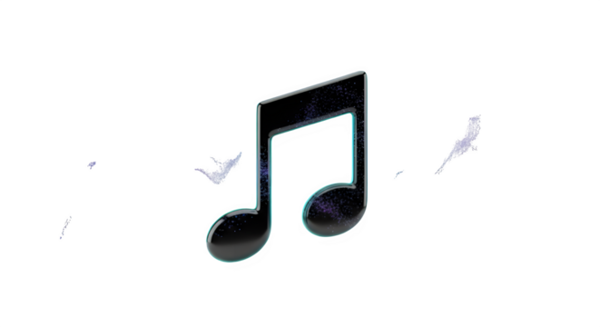 Floating turquoise musical note icon on transparent background
