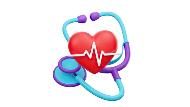 3D Stethoscope and Heart with EKG Line