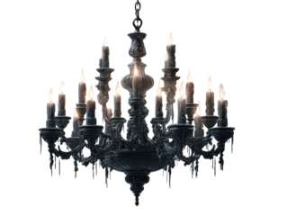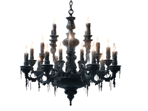 Ornate Antique Chandelier With Eight Electric Candle Bulbs Detailed Scrolling Arms Transparent Background Isolate