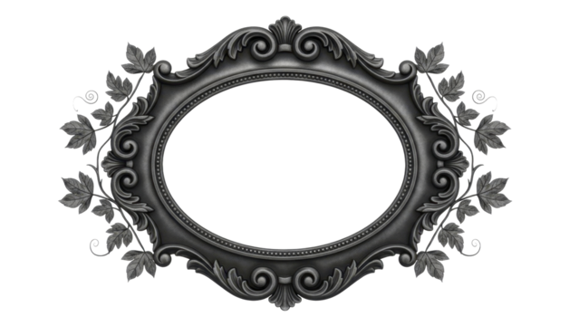 Ornate Silver Oval Frame with Decorative Leaves on a Transparent Background PNG File
