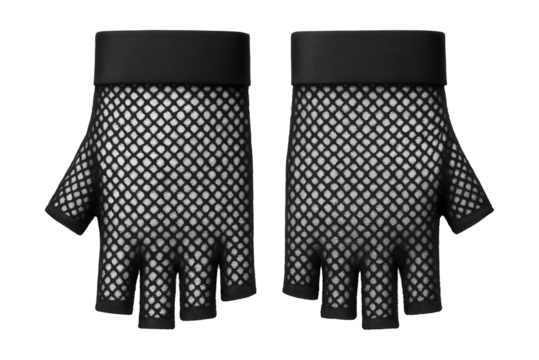 Black fishnet fingerless gloves featuring a wide elastic band.