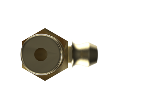 High-Quality 3D Render of a Brass 90-Degree Elbow Zerk Grease Fitting for Hydraulic and Industrial Lubrication Systems, Isolated on PNG Transparent Background for Professional Engineering Design.