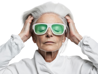 Surprised Senior Woman Using VR Headset, isolated on transparent background
