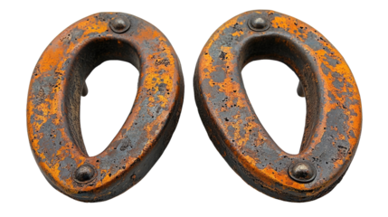 Rusty Metal Number Zero: A close-up shot highlights a pair of weathered, orange-colored metal number "0"s, their surfaces textured with rust and riveted details.