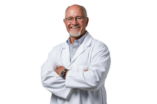 Close-up portrait of an elderly man with a serious expression looking directly at the camera isolated on transparent background