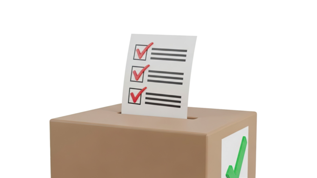 Ballot box icon with red paper, representing voting, elections, democracy, and making a choice