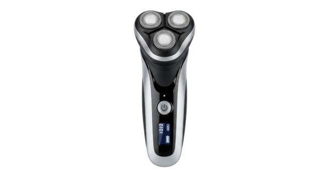 Modern electric rotary shaver for men's personal grooming isolated PNG with Transparent Background