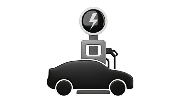 3D Modern EV Charging Station with Electric Car on White & Transparent Background