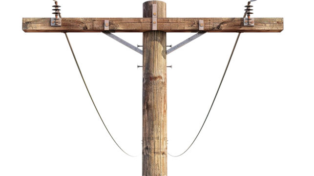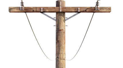 Wooden utility pole with wires isolated on a white background png ai generated
