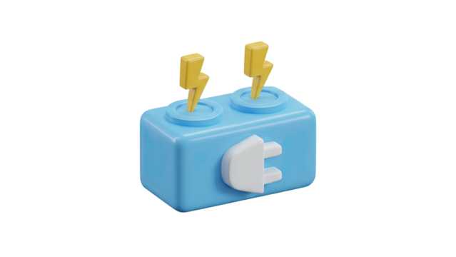 3D rendering of a blue electrical device with yellow bolts on a white background