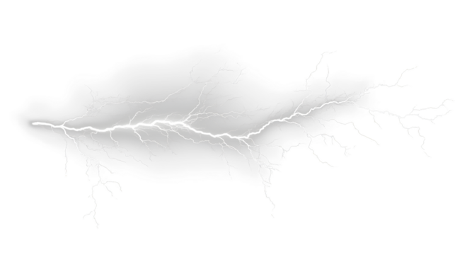 Horizontal streaks of electric blue lightning bolts with energy discharge and glowing edges on transparent background, perfect for sci-fi design, energy effects, and digital visual effects overlays