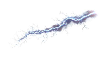 A striking image featuring a vivid bolt of electricity arcing across a cloudy formation in the sky on transparent background