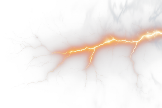 Lightning bolt striking against a light background creating a dramatic and electrifying visual effect alpha channel with white background