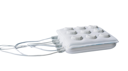 TENS therapy unit with electrodes on white background