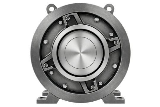 Industrial electromagnetic permanent magnet brake isolated on a transparent background