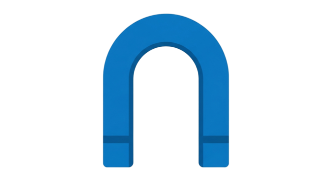 Bright blue horseshoe magnet against a stark black background